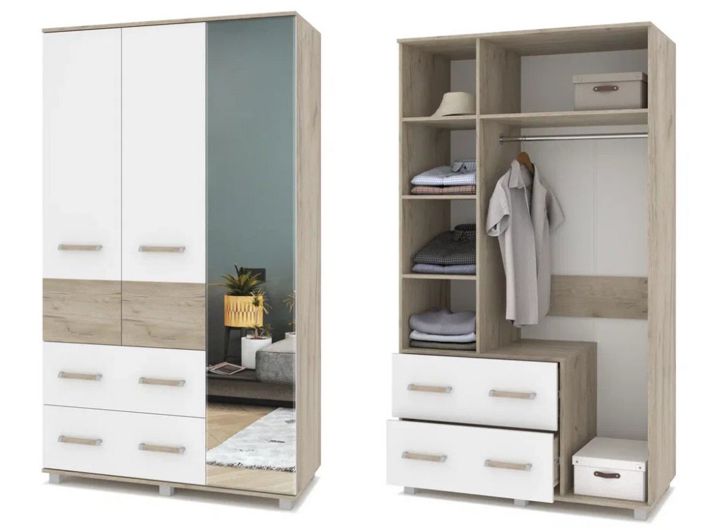 Другие фото Виора В33 Шкаф 3-х дв.+2 ящ. с зерк. Серый дуб/Белый