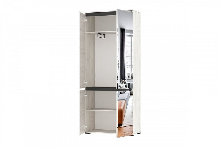Другие фото ГРЕТТА Шкаф 2С2ЗР с зерк. (ш900*г411*в2120мм), дуб крафт белый-антрацит/ дуб крафт белый
