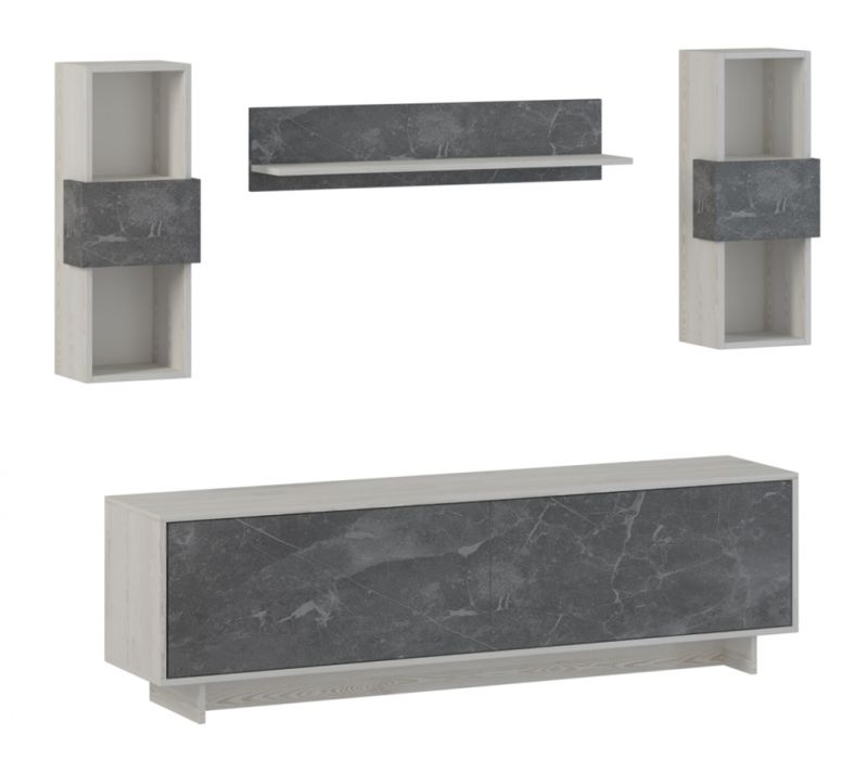 Гостиная ОСКАР Мини (ш1600*г343*в2000мм), Сосна белая лофт/ Каспий темный
