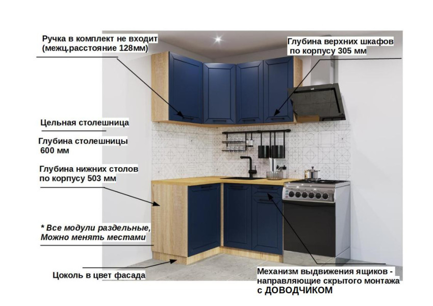 Кухонный гарнитур Мори 2.0, со столешницей