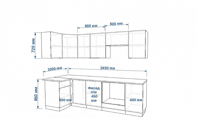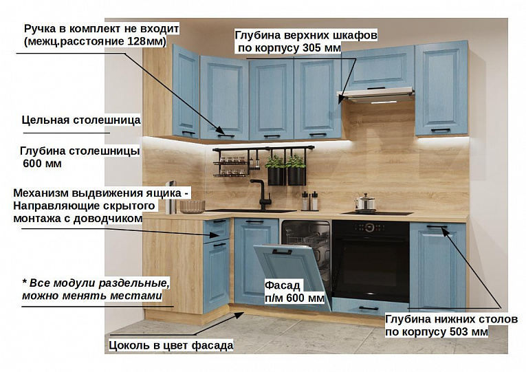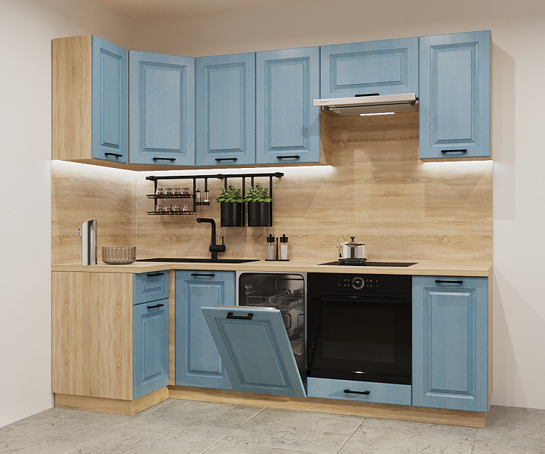 Другие фото Кухонный гарнитур арт. 21 РоялВуд Голубой Вегас 1000х2450 мм.
