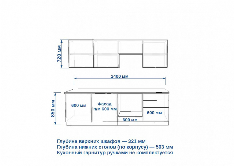 Описание Кухонный гарнитур арт. 36 Лайн Обсидиан 2400 мм.