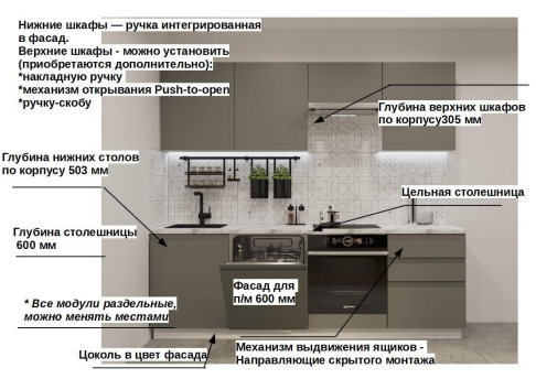 Другие фото Кухонный гарнитур арт. 36 Лайн Обсидиан 2400 мм.