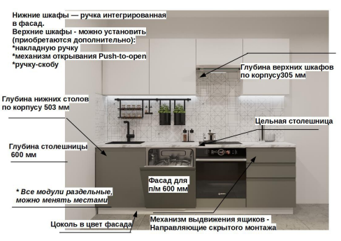 Другие фото Кухонный гарнитур арт. 39 Лайн Тальк - Обсидиан 2400 мм.