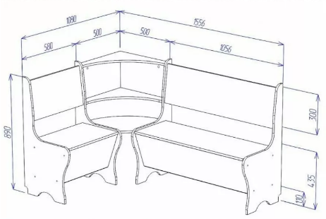 Описание Угол кухонный Комфорт (ш1556*г1080*в894мм) Анкор/Серый