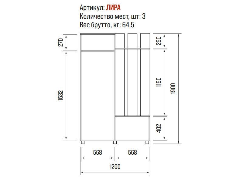Вес брутто: 64,5кг