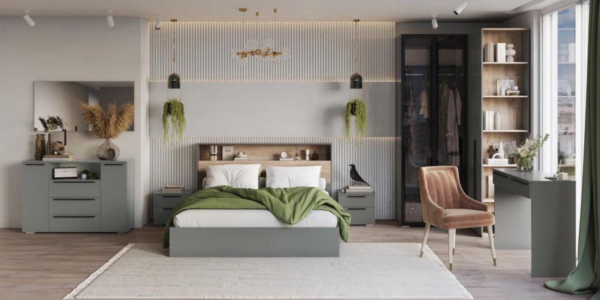 Описание Люмьер Спальня Шкаф 2 ств. со штангой и полками (ш800*г529*в2330мм) Шиншилла серая