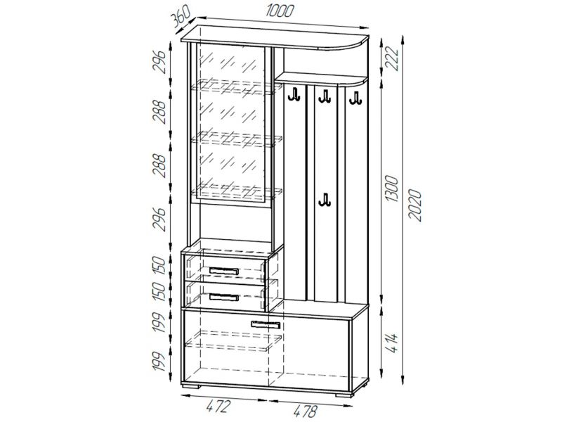 Прихожая Луиза (ш1000*г420*ш2300мм) Дуб сонома/белый