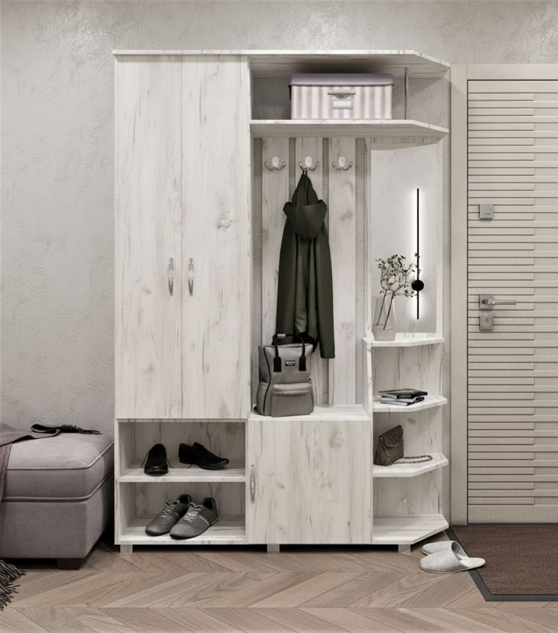 Описание Прихожая Домино,(ш1402*г340*в2050мм) Дуб крафт белый