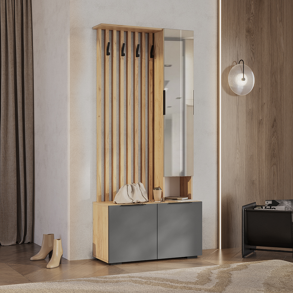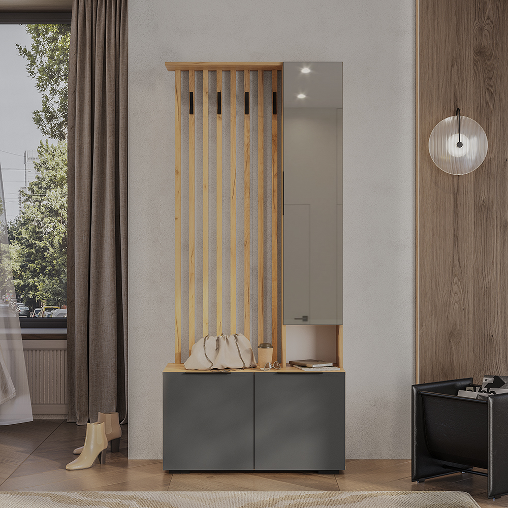 Прихожая "Сандра" поможет разместить все необходимые вещи. Задняя панель исполнена профилем МДФ (ШxВ 25x40 мм).