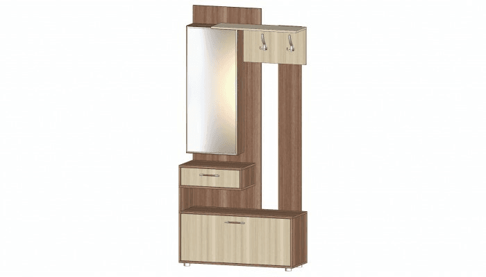 Секция с зеркалом (зеркало имеет широкий фацет по периметру) может быть собрана как на левую, так и на правую сторону.