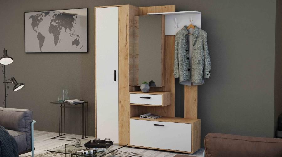 Описание Прихожая Инфинити со шкафом (ш1600*г354*в2140мм) Дуб вотан/белый