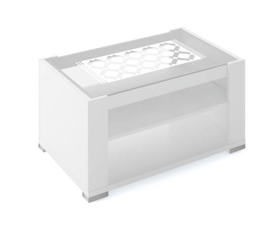 1. Стеклянная столешница , декорирована пескоструйным рисунком. 2. Дно изготовлено из ЛДСП 22 мм. 3. Прямоугольные опоры, высотой 20 мм. 4. Компактный, но функциональный столик серии Тиффани, с легкостью решит вопрос хранения вещей ежедневного использования в гостиной, например, пульта от телевизора или любимого журнала.