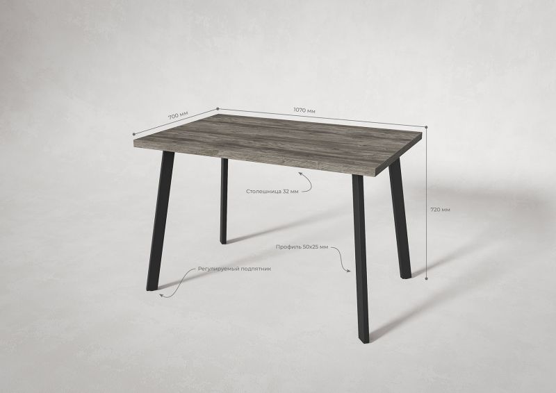 Описание Стол нераздв. ДУБЛИН 32 КРАФТ В2 (1070*700*740мм), ЛДСП Сосна пасадена, металл черный