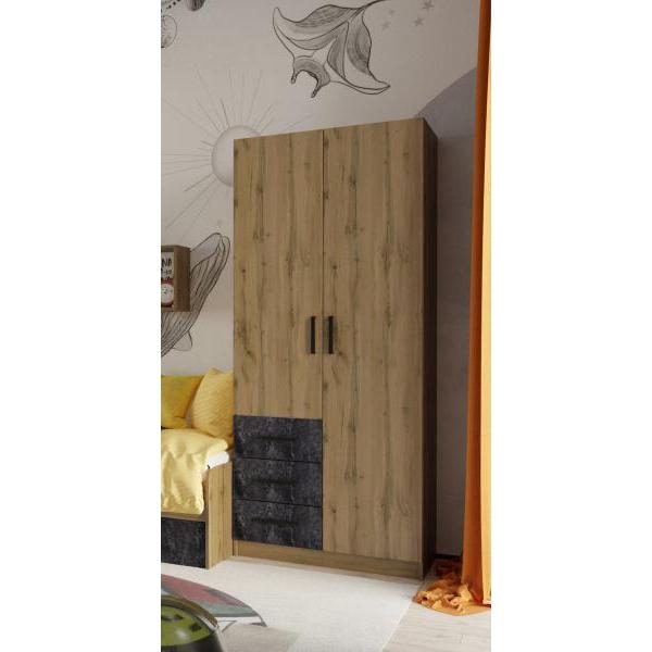 Описание ХОГВАРТС Шкаф 2-створчатый Дуб вотан / Обсидиан