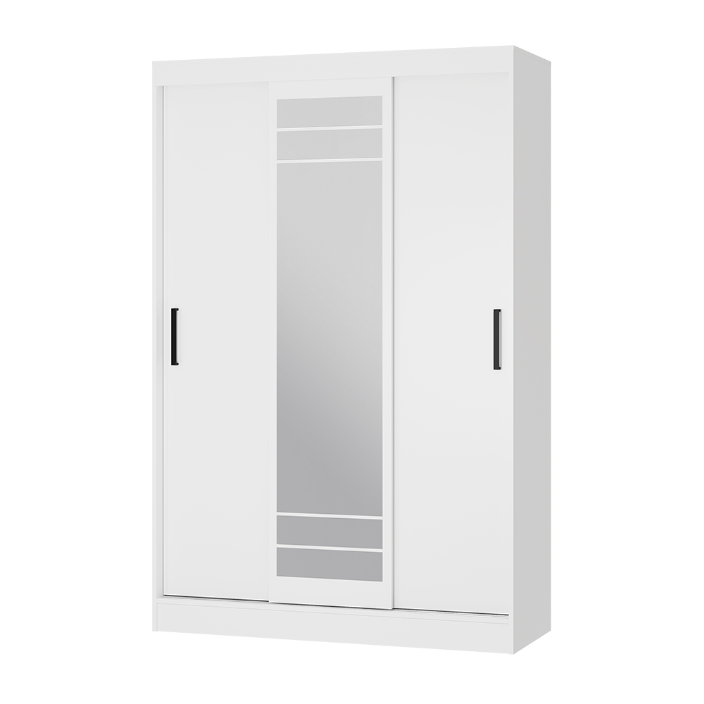 Трёхдверный шкаф-купе "Тео" ШКК-02 представляет собой сочетание практичности и функциональности. Это оптимальный вариант с точки зрения эргономики пространства. Раздвижные створки снабжены удобными ручками, центральная створка полностью декорирована зеркалом с еврокромкой, которое создаёт иллюзию расширенного пространства. Внутри с одной стороны находятся пять просторных полок для хранения вещей и постельного белья, с другой стороны – вместительная зона хранения с двумя горизонтальными хромированными штангами для одежды на вешалках.
