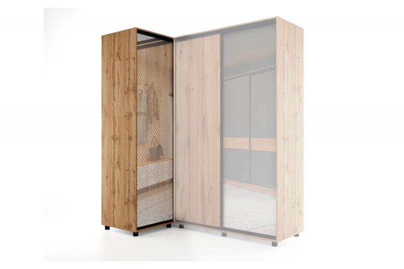 Другие фото Шкаф-купе -PRIME CORNER Угловой с зеркалом ОРС12-6.Z (1806*1205*2300мм), Дуб вотан/белый шелк.
