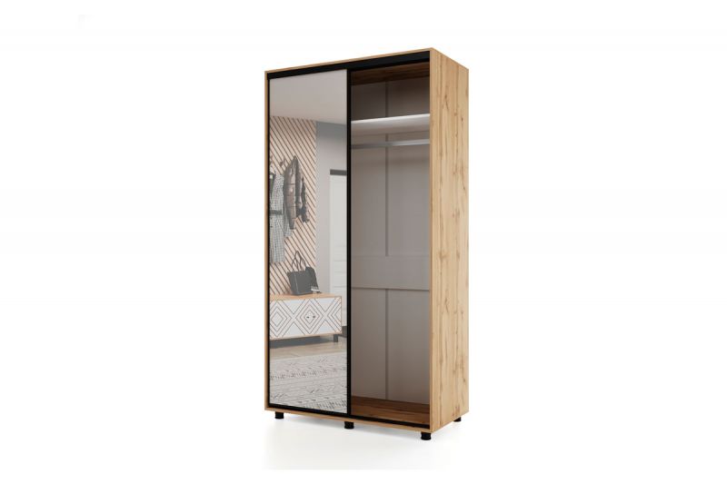 Описание Шкаф-купе -PRIME CORNER Угловой с зеркалом ОРС12-6.Z (1806*1205*2300мм), Дуб вотан/белый шелк.