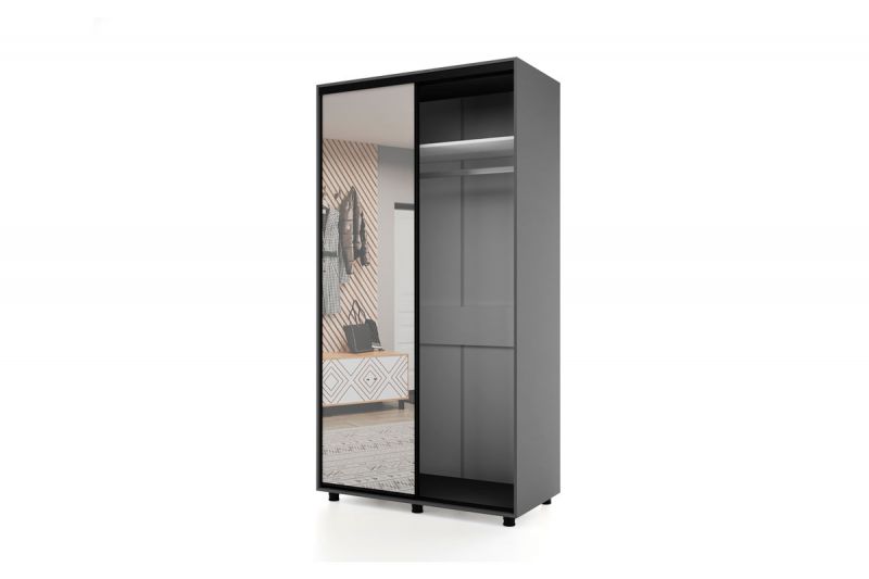 Другие фото Шкаф-купе -PRIME CORNER Угловой с зеркалом ОРС12-6.Z (1806*1205*2300мм), Темно-серый/белый шелк