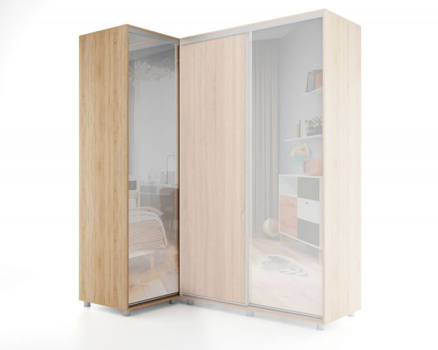 Описание Шкаф-купе -PRIME CORNER Угловой с зеркалом ОРС12-6.Z (1806*1205*2300мм), Дуб сонома/белый шелк.