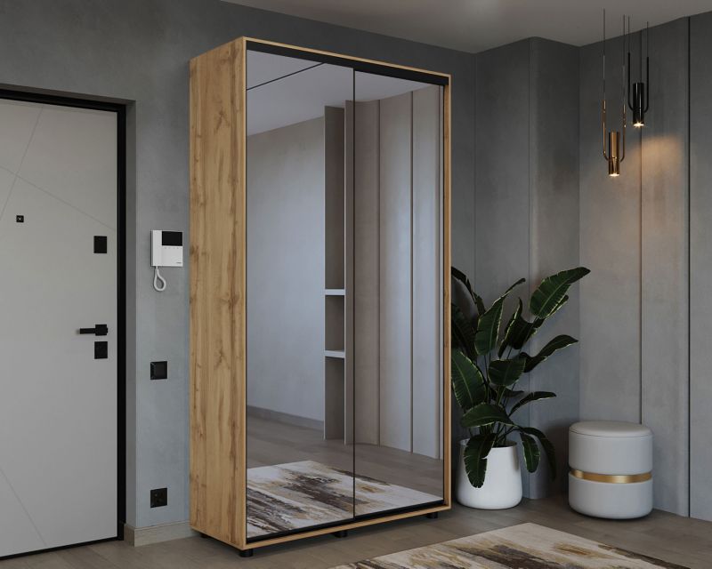 Описание Шкаф-купе Prime двухдверный ОР14-4.2Z (ш1400*г450*в2300мм) дуб вотан/белый шелк