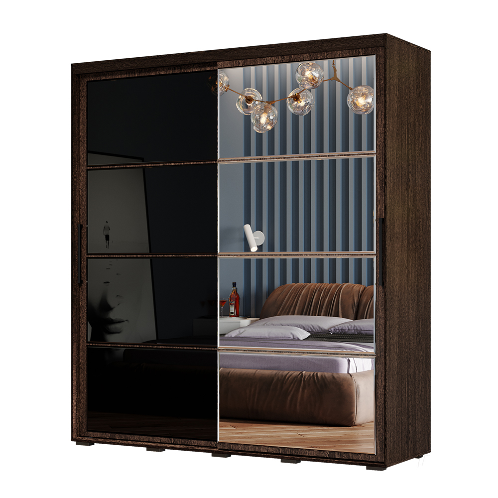 Практичный и многофункциональный шкаф-купе "Крафт-6" подойдет для любой комнаты вашей квартиры или дома. Модель изготовлена из ЛДСП; одна раздвижная створка выполнена из стекла с лакобелью, а вторая – зеркальная, такой прием облегчает конструкцию и позволяет расширить пространство. Внутри шкаф состоит из многочисленных полок и ящиков для белья и одежды, а также отделения со штангой для плечиков.